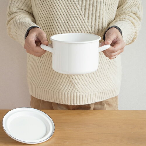 真っ白でシンプルな形の かわいいホーロー鍋。
