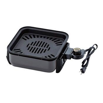 ●商品サイズ(約):幅36×奥行24.5×高さ10.5cm ●プレート(内寸):幅21×奥行21×高さ3cm ●重量(約):1.56kg ●消費電力:1200W ●電源:100V(50/60Hz) ●コードの長さ:1.4m ●材質 本体:鉄(粉体塗装) 脚部:ポリプロピレン樹脂 プレート:アルミニウム合金(ふっ素樹脂加工) ●備考:プレート、温度調節器の丸洗いはしないでください。